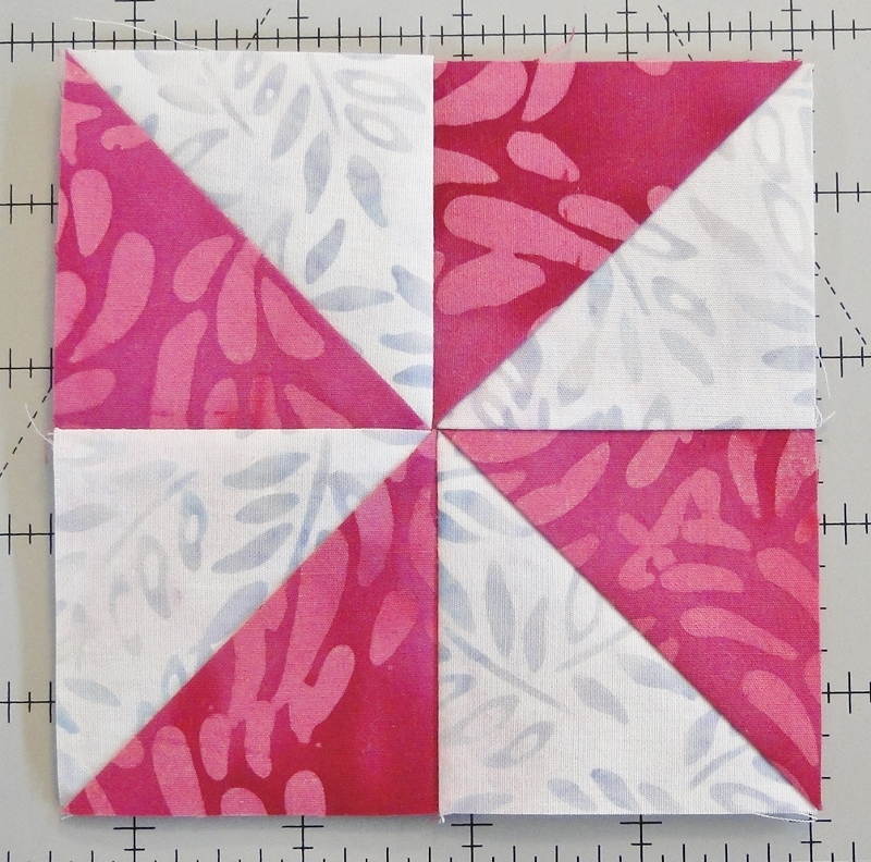Have you noticed that when you make a block, such as a pinwheel block, with several seams that intersect in one place, that they often form a hard "knot" of a place? Well, that knot can be a challenge for the needle to penetrate during quilting. If it is bad enough, it will pose a risk of a broken needle or damaged quilt top. Here's how that knot can be minimized.- Join your pieces as usual.